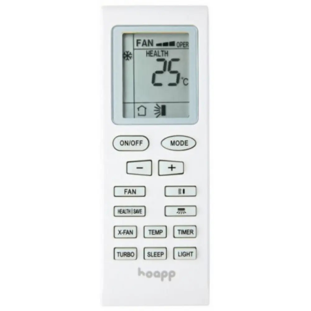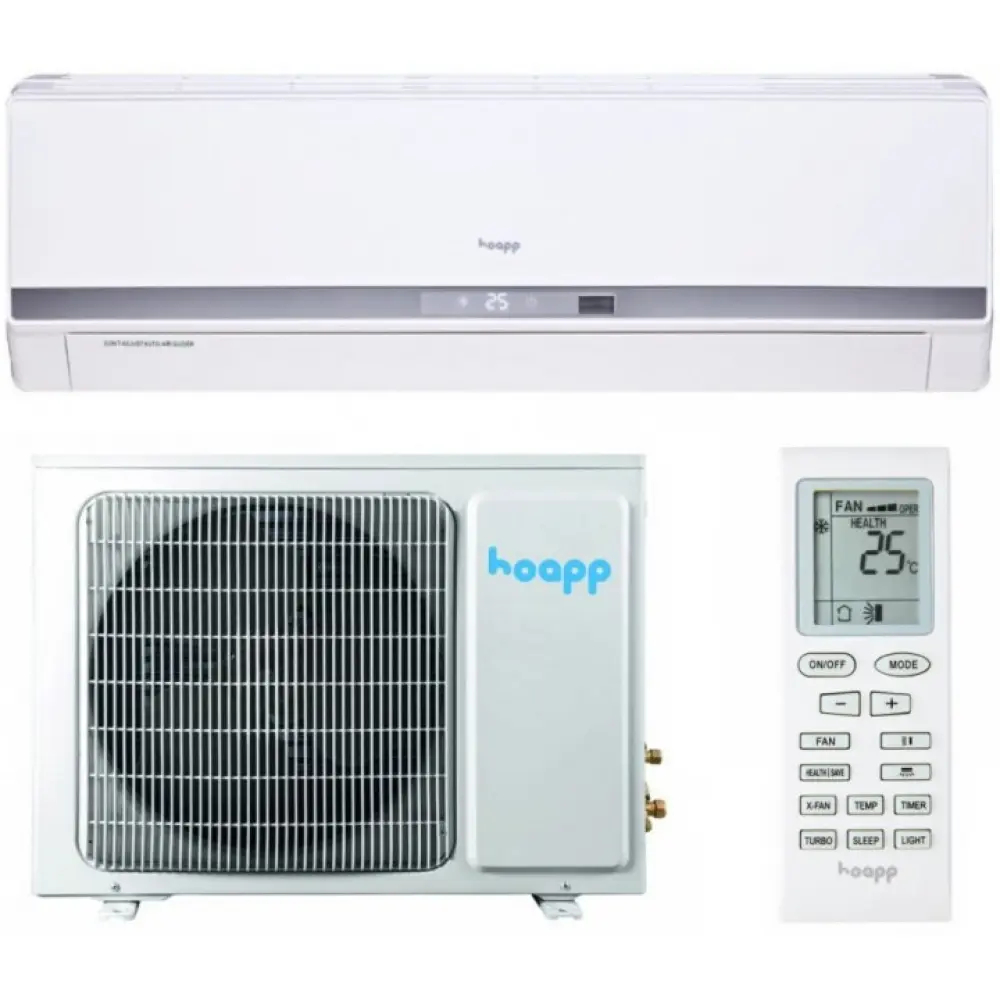 Охолодження та обігрів: Кондиціонер Hoapp Line працює ефективно як у режимі охолодження при температурах до +43 °C зовнішнього повітря, так і у режимі обігріву при морозах до -7 °C, що забезпечує комфортні умови у будь-яку пору року.